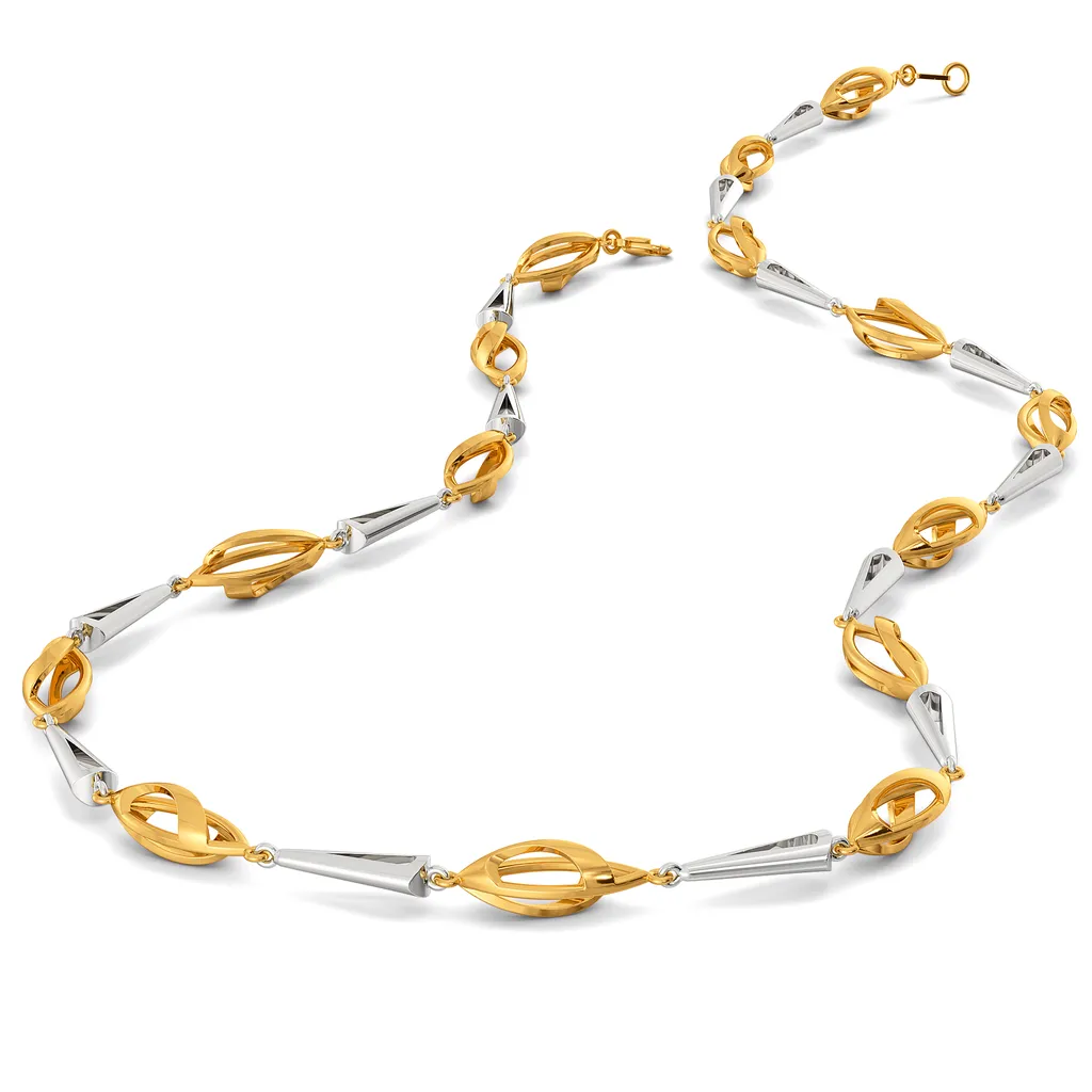 Trail Binds Gold Chain from the Evara.High polish chain that has a yellow gold double convex pattern with alternate rhodium plating drop motifs. Beautifully created 18Karat Gold Necklace from our Classics collection for today’s women.